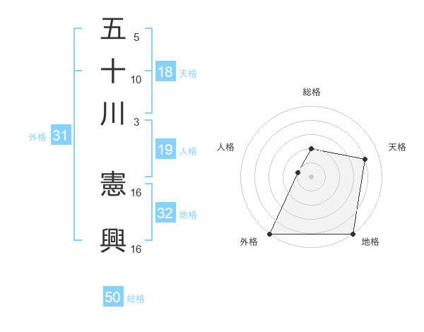 五十川 憲興さんを姓名の画数から五運を鑑定