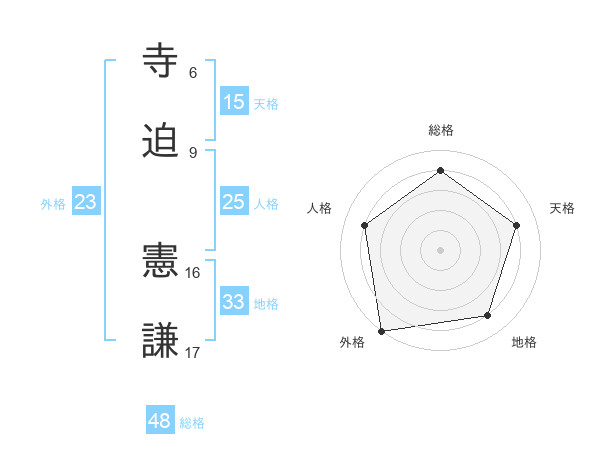寺迫 憲謙さんを姓名の画数から五運を鑑定