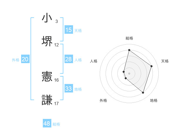 小堺 憲謙さんを姓名の画数から五運を鑑定