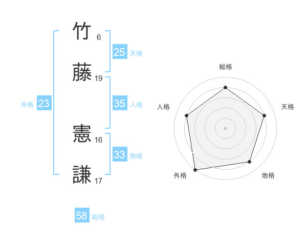 竹藤 憲謙さんを姓名の画数から五運を鑑定