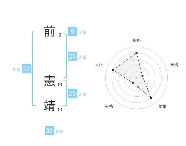 前 憲靖さんの総格は38画の4点!