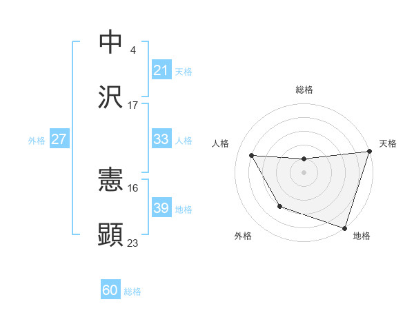 中沢 憲顕さんを姓名の画数から五運を鑑定