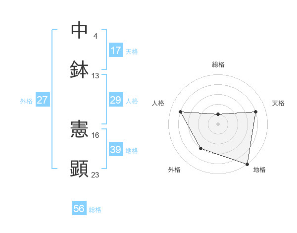 中鉢 憲顕さんの天格は17画の4点!