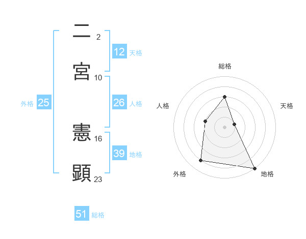 二宮 憲顕さんを姓名の画数から五運を鑑定
