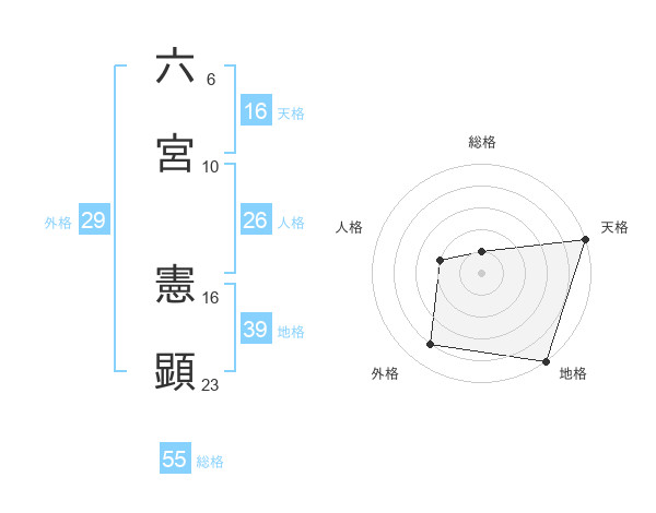 六宮 憲顕さんを姓名の画数から五運を鑑定