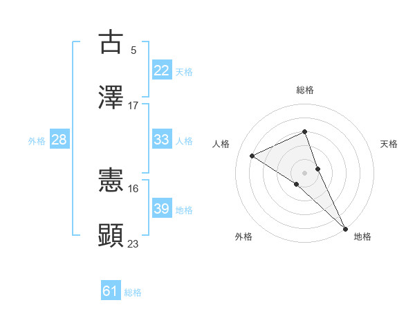 古澤 憲顕さんの総格は61画の3点!