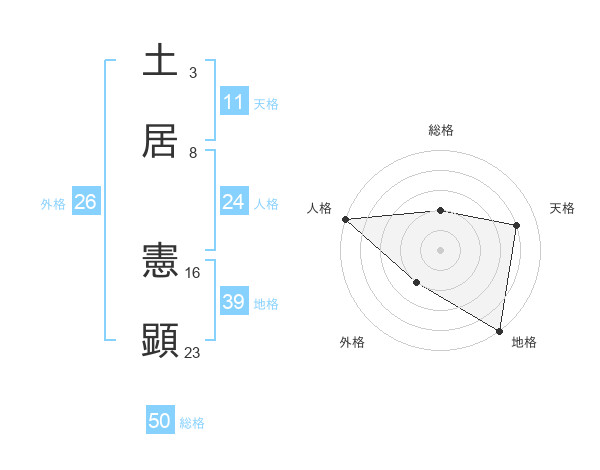土居 憲顕さんを姓名の画数から五運を鑑定