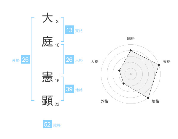 大庭 憲顕さんの総格は52画の4点!