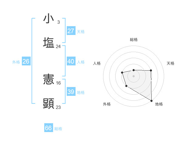 小塩 憲顕さんを姓名の画数から五運を鑑定
