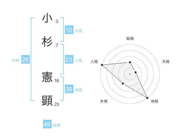 小杉 憲顕さんを姓名の画数から五運を鑑定