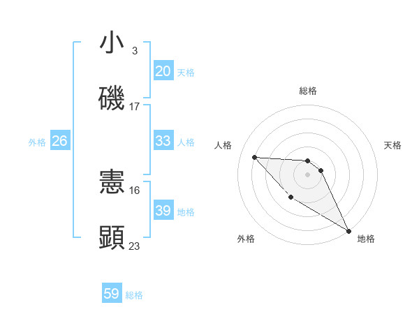 小磯 憲顕さんを姓名の画数から五運を鑑定