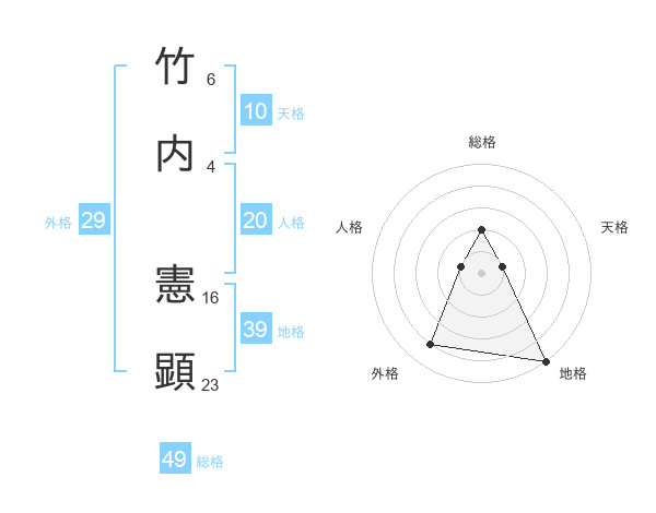 竹内 憲顕さんの総格は49画の2点!