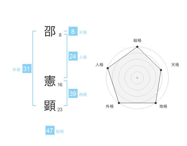 邵 憲顕さんの総格は47画の5点!