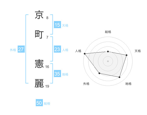 京町 憲麗さんを姓名の画数から五運を鑑定