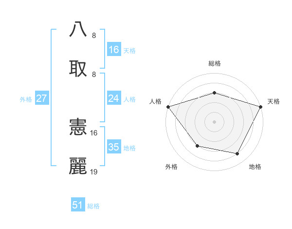 八取 憲麗さんを姓名の画数から五運を鑑定