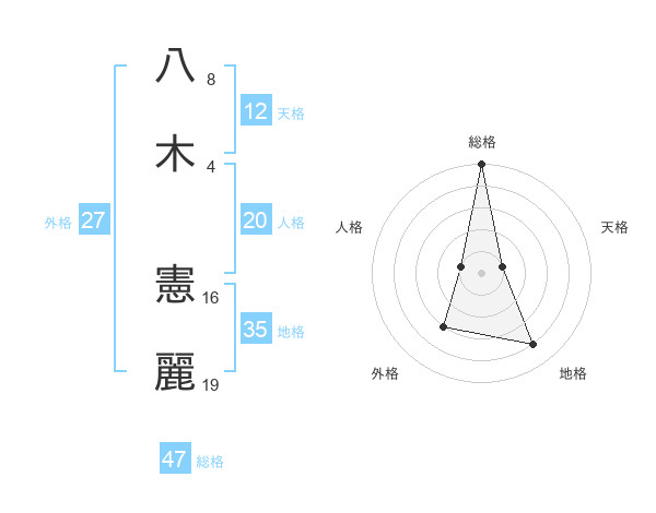 八木 憲麗さんを姓名の画数から五運を鑑定