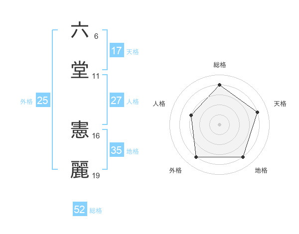 六堂 憲麗さんを姓名の画数から五運を鑑定
