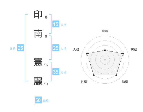 印南 憲麗さんの総格は50画の2点!