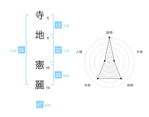 寺地 憲麗さんの総格は47画の5点!