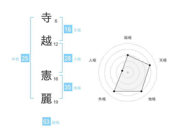 寺越 憲麗さんの総格は53画の3点!