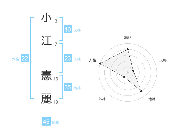 小江 憲麗さんの総格は45画の4点!
