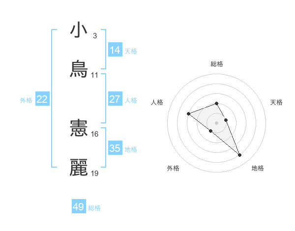 小鳥 憲麗さんを姓名の画数から五運を鑑定