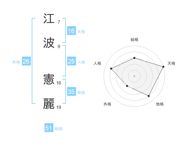 江波 憲麗さんの総格は51画の3点!