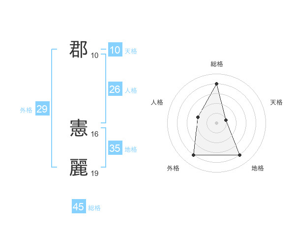 郡 憲麗さんを姓名の画数から五運を鑑定