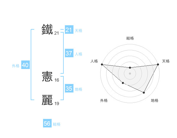 鐵 憲麗さんを姓名の画数から五運を鑑定
