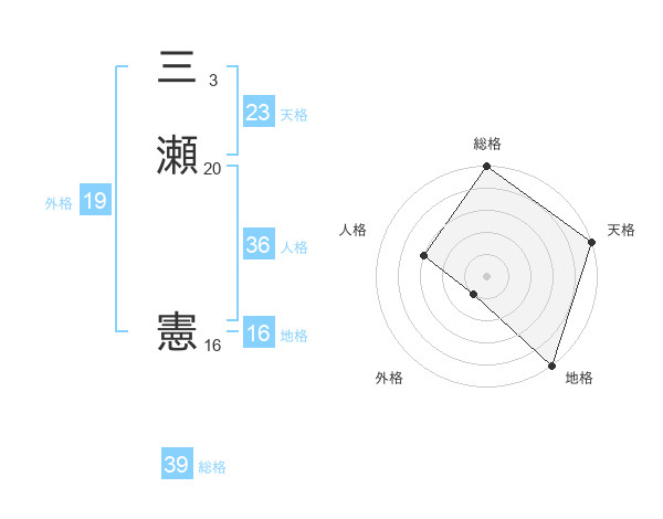 三瀬 憲さんの天格は23画の5点!