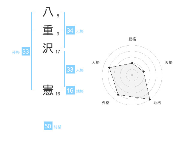 八重沢 憲さんを姓名の画数から五運を鑑定