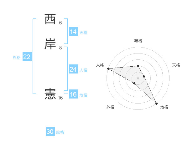 西岸 憲さんの総格は30画の2点!