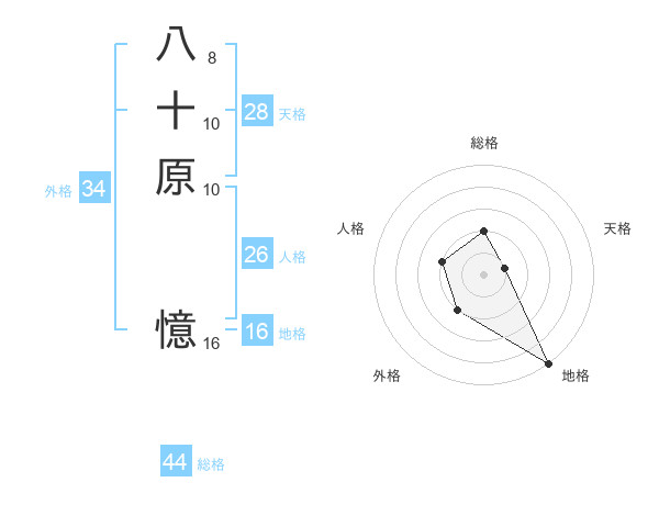 八十原 憶さんの総格は44画の2点!