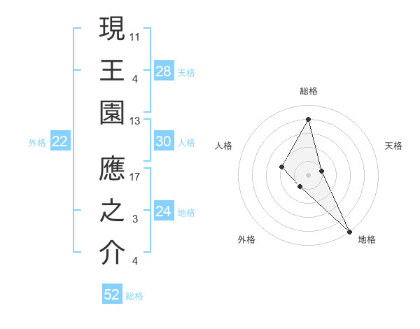 現王園 應之介さんを姓名の画数から五運を鑑定