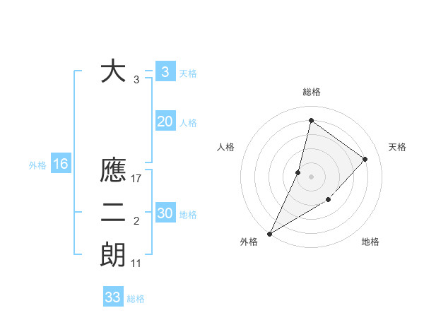 大 應二朗さんの天格は3画の4点!