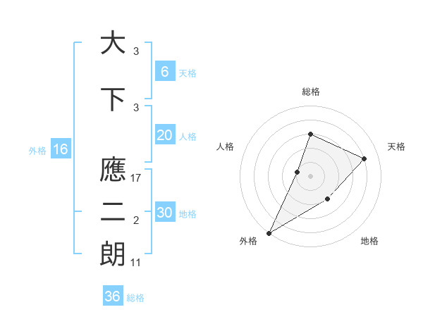 大下 應二朗さんの天格は6画の4点!