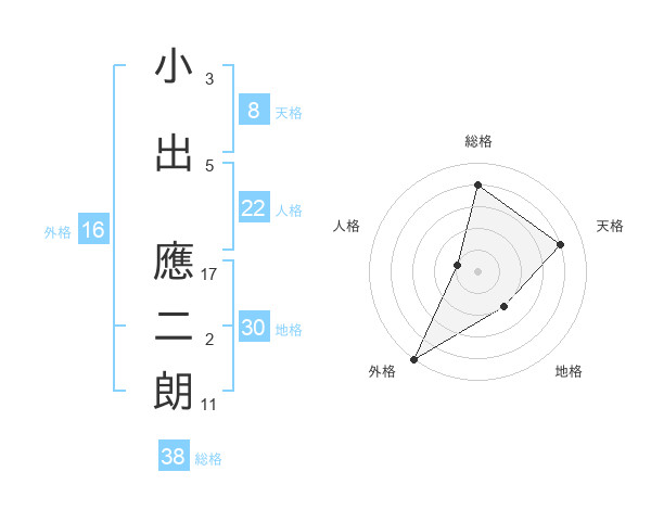 小出 應二朗さんを姓名の画数から五運を鑑定