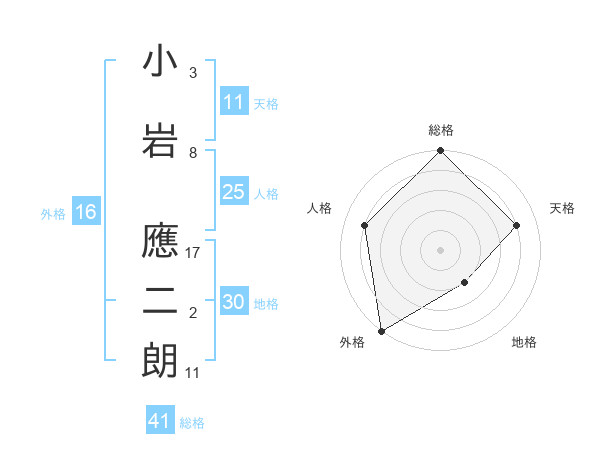 小岩 應二朗さんの外格は16画の5点!
