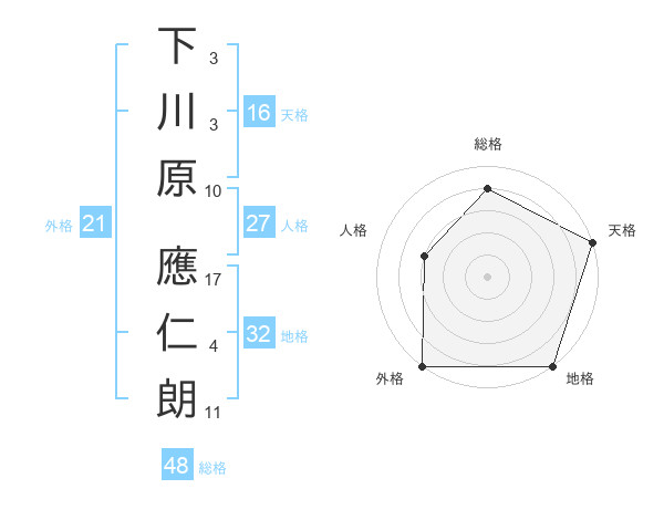 下川原 應仁朗さんを姓名の画数から五運を鑑定