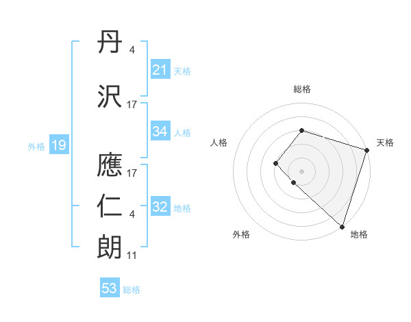 丹沢 應仁朗さんを姓名の画数から五運を鑑定