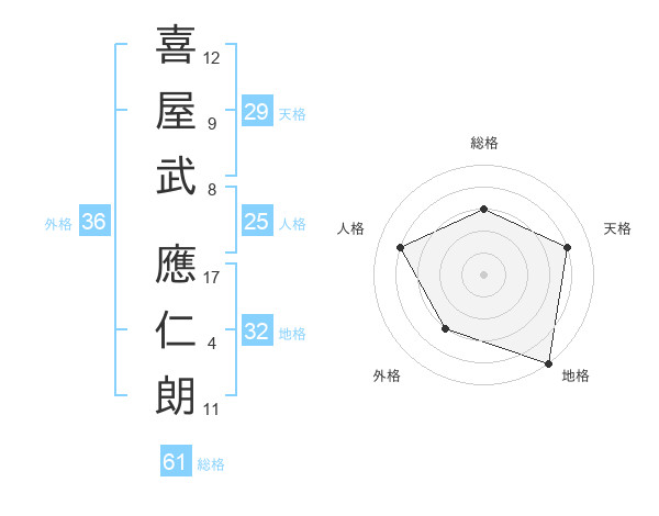 喜屋武 應仁朗さんの総格は61画の3点!