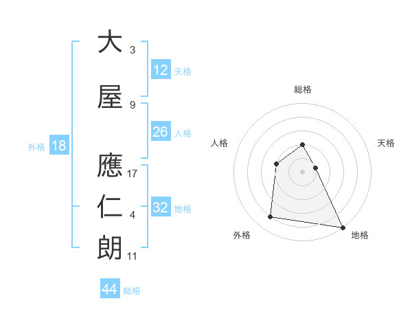 大屋 應仁朗さんを姓名の画数から五運を鑑定