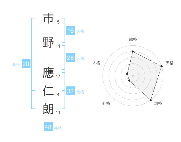 市野 應仁朗さんを姓名の画数から五運を鑑定