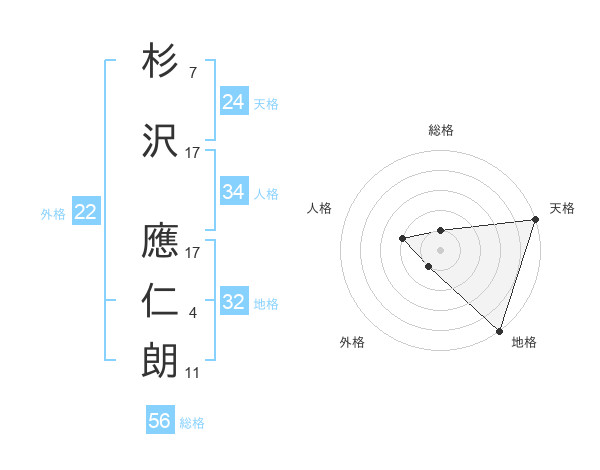 杉沢 應仁朗さんを姓名の画数から五運を鑑定