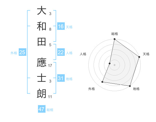 大和田 應士朗さんを姓名の画数から五運を鑑定