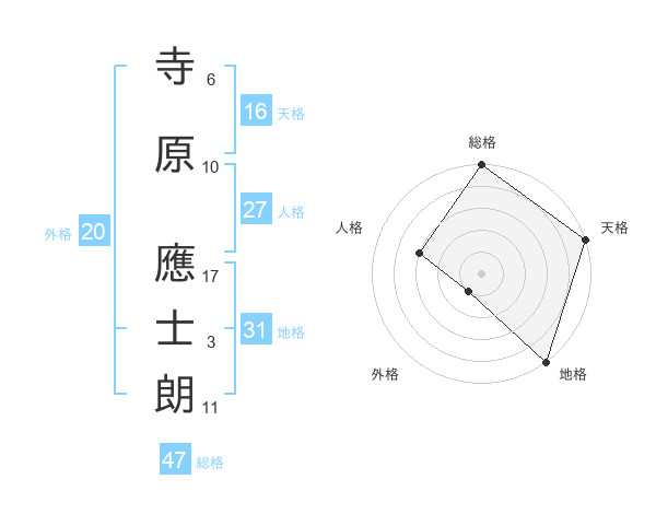 寺原 應士朗さんの総格は47画の5点!