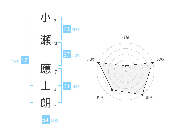 小瀬 應士朗さんを姓名の画数から五運を鑑定