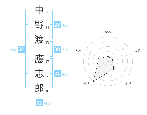 中野渡 應志郎さんの外格は32画の5点!