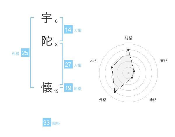 宇陀 懐さんを姓名の画数から五運を鑑定