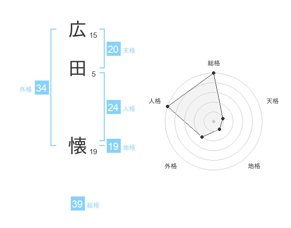 広田 懐さんの総格は39画の5点!